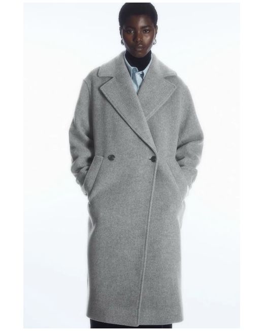 COS oversized double breasted wool blend coat size M Will fit UK 10 to 14 RRP £240 Offered in an enduring grey hue, this enveloping coat is crafted from an insulating wool blend that has been sourced from luxury textile experts Manteco. It's shaped with a double-breasted close and designed with oversized notch lapels, soft shoulders, premium pick stitching and wrapped-seam sleeves that create a cocooning silhouette. Just as much attention was paid to the inside – note the buttoned welt pocket and full lining so it layers effortlessly over knitwear. 66% wool, 30% polyamide, 2% acrylic, 1% polyester, 1% viscose Lining: 100% viscose
