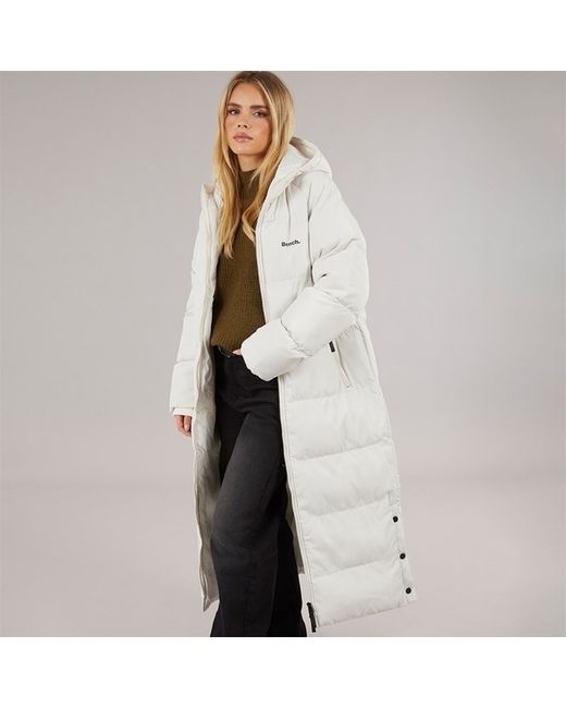 Bench longline hooded zip through puffer Coat. Our model is 5'7" and wears a size 10. Grown-on hood. Straight hem. Machine wash at 30. Full zip fastening. XL → UK 16 → EU 44. 100% polyester shell and lining.