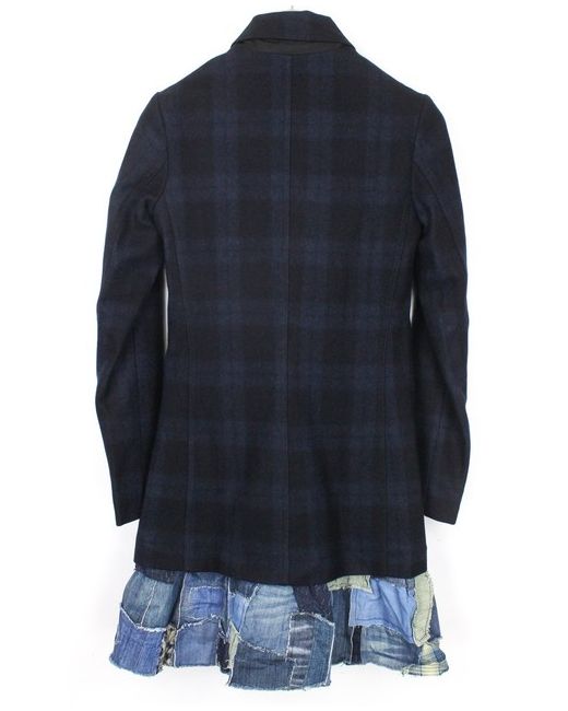 Snowrobot Navy Coat 40 Wool Blend Checked Long Sleeve Outerwear