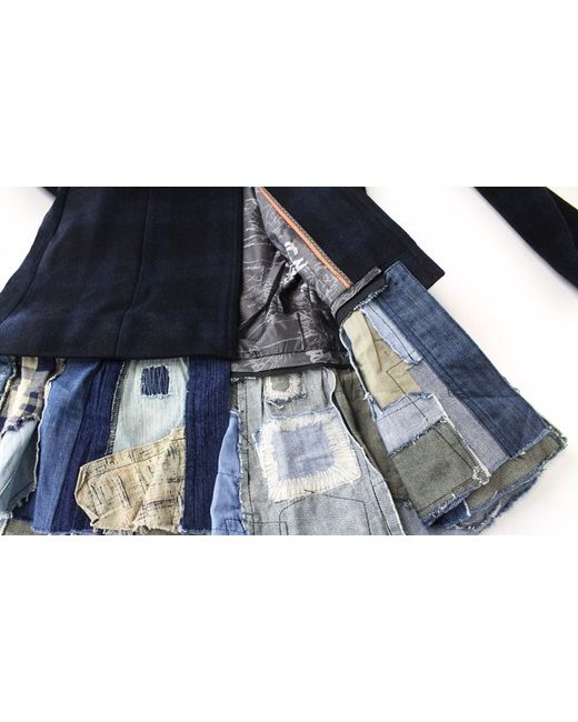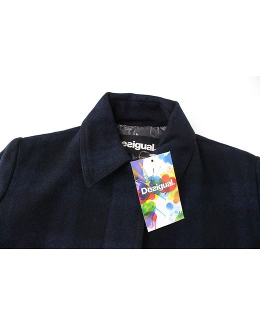 Womens Jacket 42 Checked Pattern Wool Blue Blend Short Sleeve