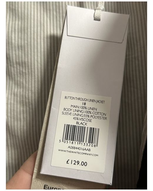 The White Company Women's Button Through Linen Jacket Black Size 18 New WithTags