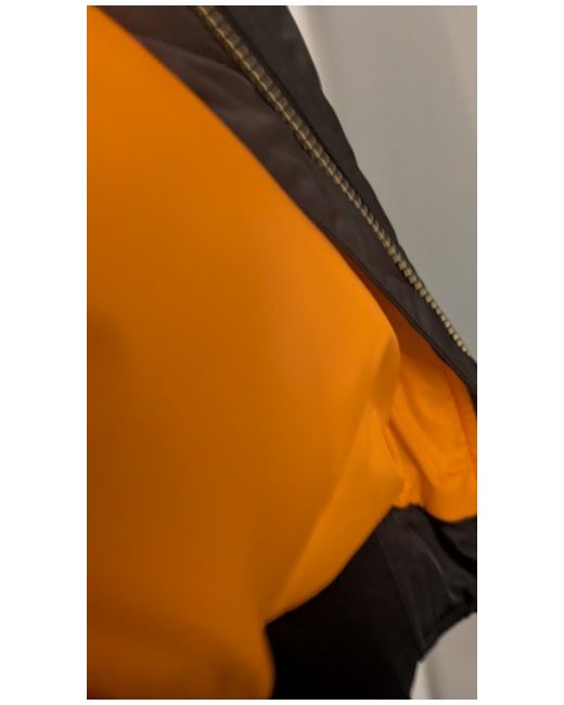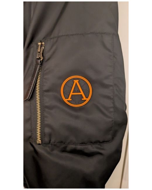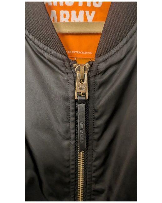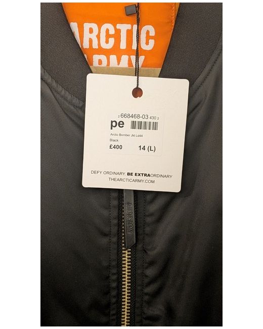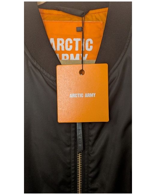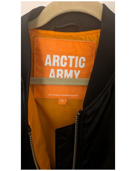 The Arctic Army Black Bomber Jacket in size 14 features a striking orange lining, making it a bold statement piece for casual occasions. Made from polyamide, this mid-length jacket is machine washable for easy care. With a classic bomber style and army theme, this coat from Arctic Army is perfect for women looking to add a pop of colour to their wardrobe.