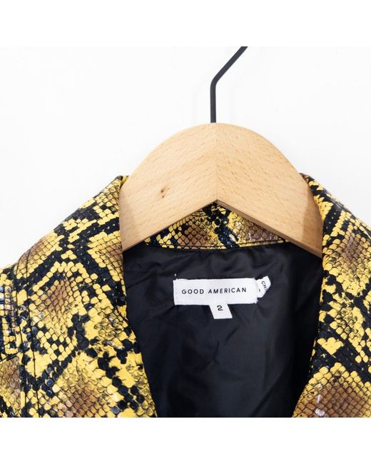 Item Details: Size: GA 2 / Medium (Oversized Style - Will Fit UK 8 - UK 18) Condition: New with tags Approximate Measurements: Pit to Pit: 25" Length: 27.5" Additional Details: - RRP £175 - Faux Leather / Polyurethane Coated - Yellow Golden / Black Snake Print - Oversized Fit Open to Reasonable Offers Returns Accepted