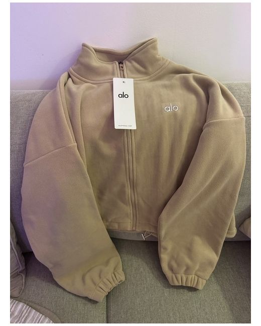 Quilted Fleece Cropped Jacket Taupe Large Uk12-14