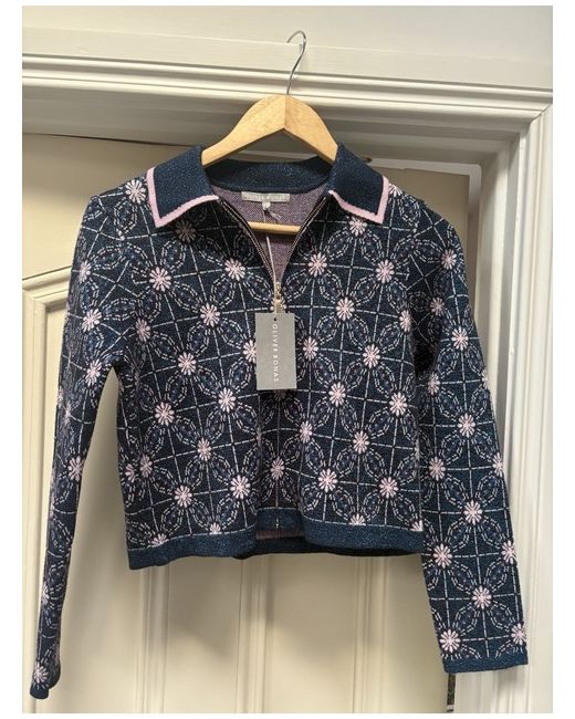 Gorgeous never worn (new with tags) Oliver Bonas Blue and pink geometric knitted bomber jacket / cardigan with collar ! Size UK 6 Originally £68 RRP Also selling matching trouser on my page - message and can do a bundle deal if interested !