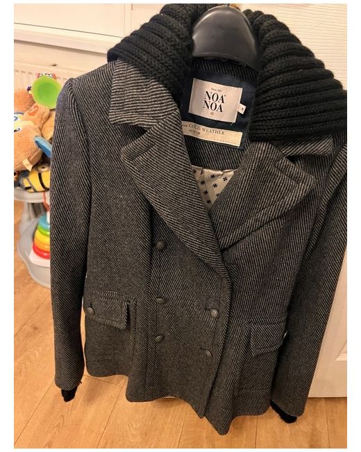 The Noa Noa Cold Weather Coat is a stylish mid-length wool coat in black, perfect for casual occasions during the winter and spring seasons. This coat features a regular fit and polyester insulation for added warmth, making it a practical and fashionable choice for women. Easy to care for with machine washable properties, this coat by Noa Noa is a timeless pea coat style that exudes elegance and sophistication.