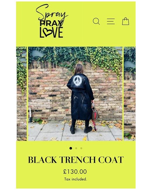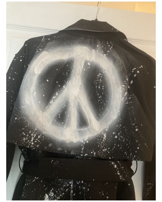 Spray Pray Love unique trench coat. Rags removed but never worn. White peace sign graffiti detail on the back. Will fit size 8-10. Pair £100 New.