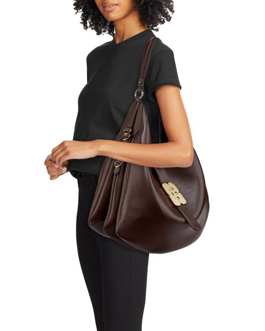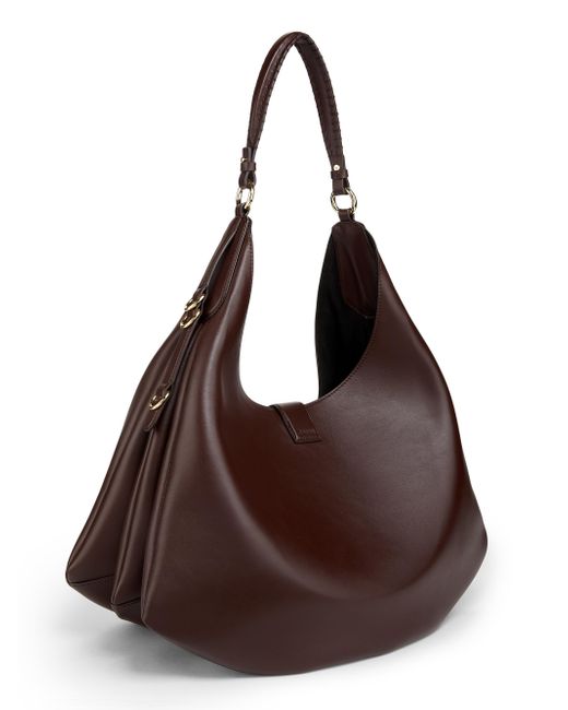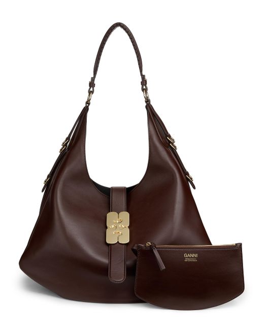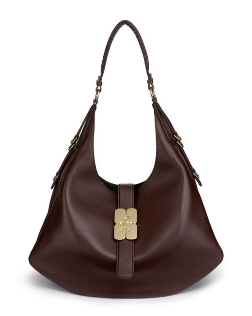This hobo bag from Ganni is designed with a slouchy silhouette and features a goldtone closure. Made with recycled leather Shoulder strap Removable pouch Magnetic closure Leather/polyurethane/polyester Lining: leather/polyester Trim: leather/polyurethane/polyester Imported SIZE About 17.5"W x 11.5"H x 4.75"D Shoulder strap: about 11.5" drop. Handbags - Collection Handbags > Ganni > Saks Fifth Avenue. Ganni. Color: Chicory Coffee.