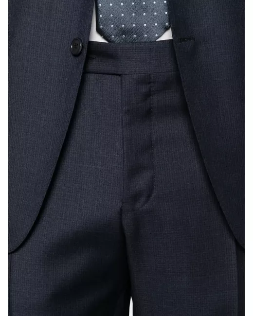 dark blue micro check pattern two-button fastening notched lapels flap pockets