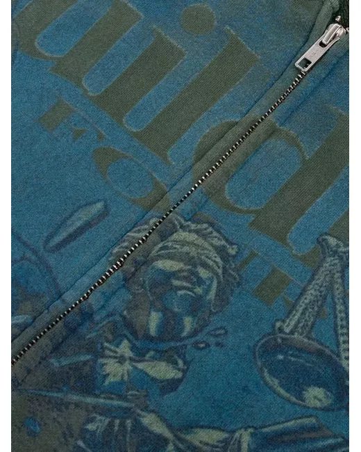 green graphic print zip fastening hood long sleeves ribbed cuffs