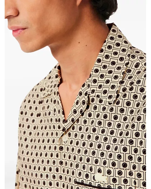 beige patterned chest pocket short sleeves button fastening