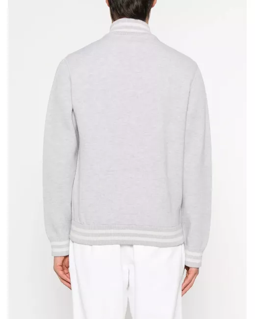Gray stripe-trim bomber jacket