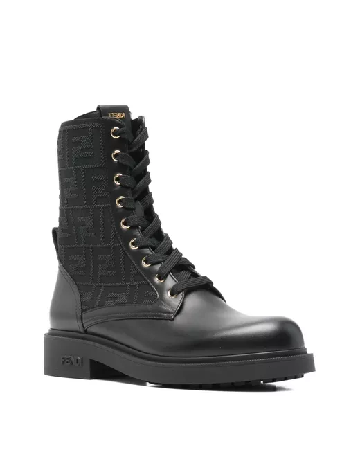 black logo pattern lace-up fastening gold-tone eyelets pull-tab at the heel