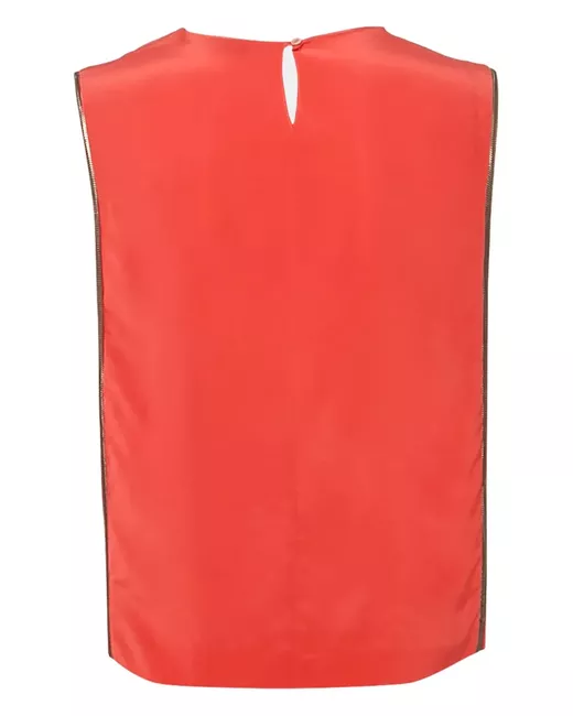 red silk sleeveless metallic trim round neck Condition: GOOD. This previously owned and used item is in good condition with minimal signs of use. This may include fading of material or plating and scratches.