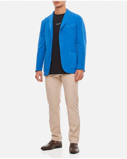 Men's Blue Single-breasted 2-button Jacket Cotton Canvas