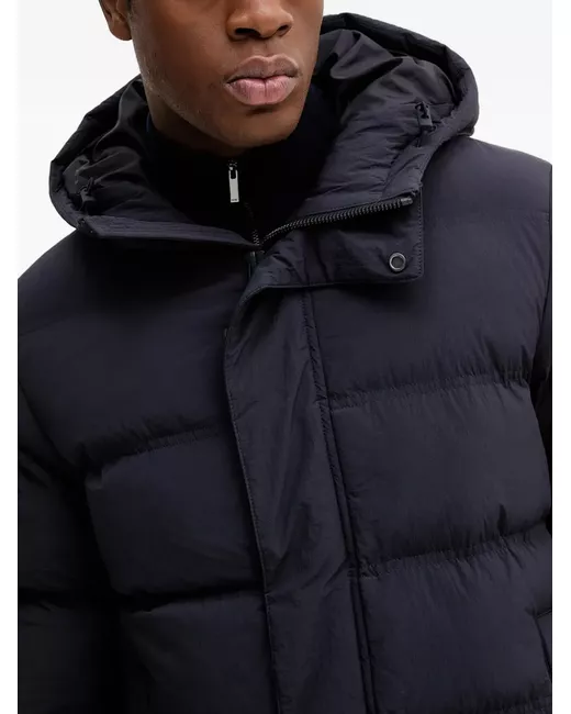 blue padded design hooded front zip fastening press-stud fastening long sleeves