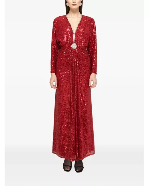 red sequined crystal embellishment long sleeves V-neck gathered detail