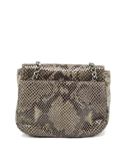 2000s grey snakeskin pattern flap closure chain strap circular logo detail Condition: GOOD. This previously owned and used item is in good condition with minimal signs of use. This may include fading of material or plating and scratches.