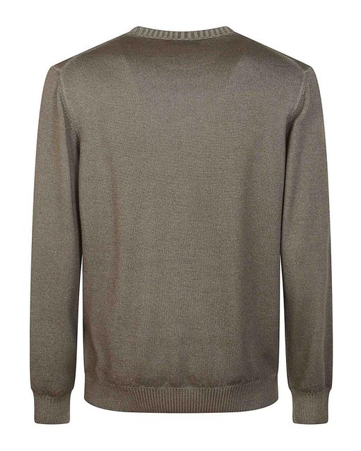 Green virgin wool sweater, iconic logo embroidered at the bottom, crew neck edge at the bottom and ribbed cuffs.