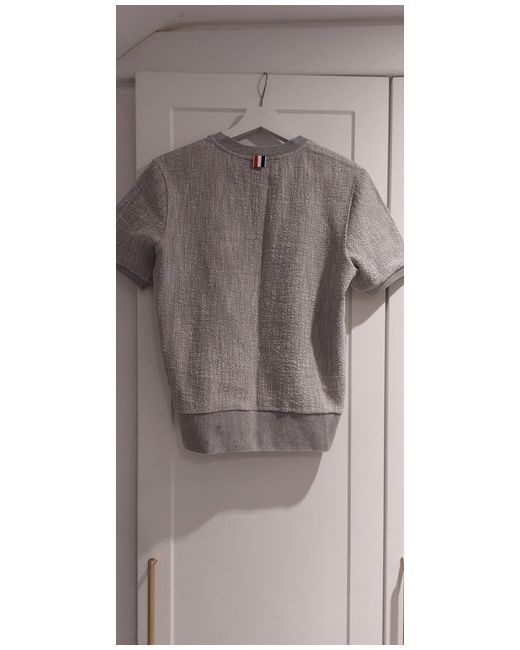Thom Browne boucle logo patch t shirt 100% cotton ribbed boucle Ribbed cuffs Signature stripe at the back Unworn Length 23 inches Bust 38 inches Unisex Rrp £650