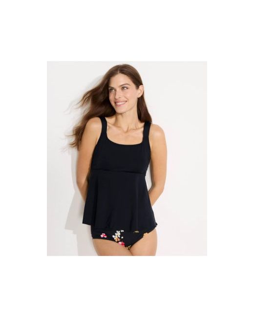 Women's Black Adjustable Scoop Neck Flutter Tankini Top