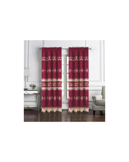 Red Rt Designer Collection Alice Macrame Luxurious Decorative Rod Pocket Curtain Panel 54x22 x 84x22 Burg