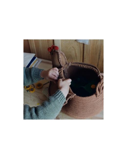 This charming chicken basket will keep your little coop tidy! Handcrafted from cotton cords and filled with bottle fibers, it s designed with anadorable chicken shape and a playful cord tail, making it easy to take anywhere. Plus, it comes with a mini chicken textile toy for extra fun duringplaytime! With plenty of space to store toys and other kid essentials, it s the perfect way to keep their room organized in style. A cute and cluck-tastic addition to any child's space!