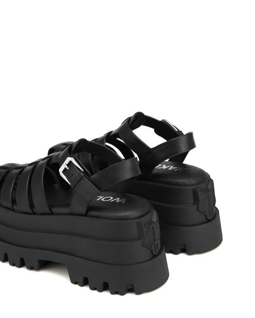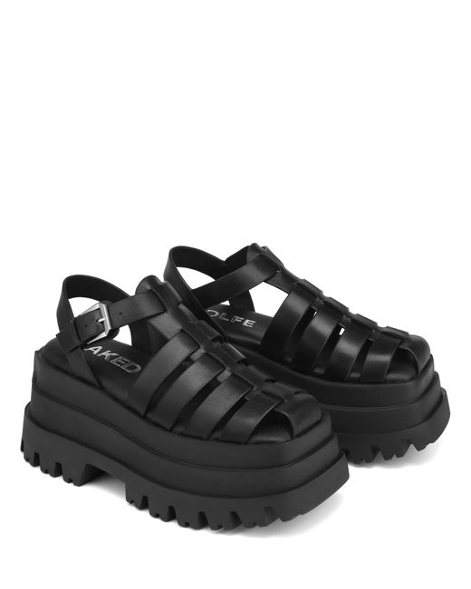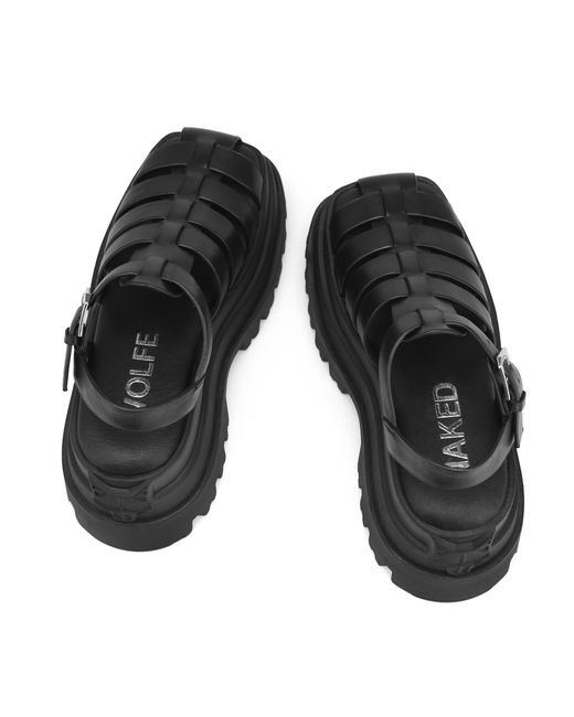 Product Description Devil is NW's newest chunky sandal. Devil is made from a high quality cow leather featuring a Naked Wolfe sock and silver buckle. Devil is on a brand new Naked Wolfe construction, featuring a three-tier platform with a bold square toe. Features Full leather footbed Heel height 90mm Full leather upper Brand new NW sandal design.