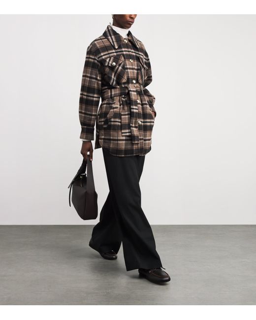 Musing on the casual sophistication of the overshirt, Maje adapts its form for the challenges of the cold seasons, and the result is this short check coat. Rendered from a plush blend rich in wool to keep you warm, it falls straight through the body and can alternatively be cinched using the tonal belt to achieve a more streamlined look.