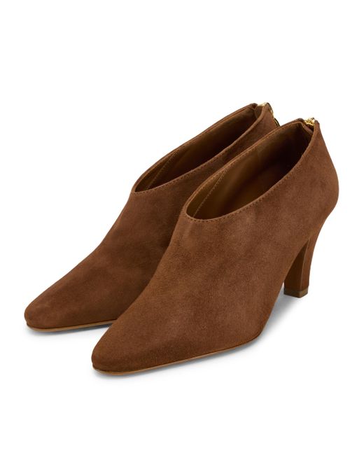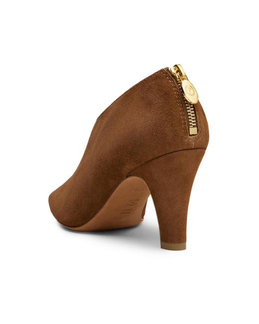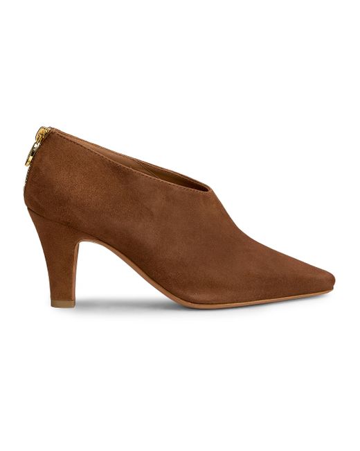 The Muse ankle booties from Pollini are crafted of suede in a point-toe silhouette. A covered heel and exposed goldtone zip closure complete this style. Point toe Back zip closure Suede upper Leather lining Made in Italy. Women's Shoes - Designer Womens Shoes > Pollini > Saks Fifth Avenue. Pollini. Color: Hide. Size: 6.5.