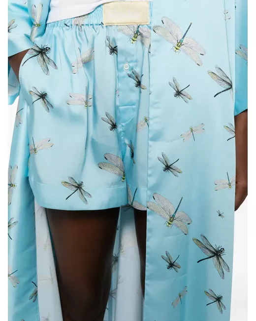 light blue dragonfly print open front wide sleeves calf length tie detail