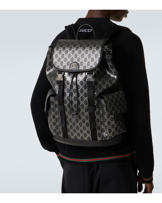 Material: fabric. Lining: fabric. Made in Italy. Designer color name: BLK SILV/BL/BL/BL/BL. Item color: black, silver. Closure: snap-clasp fastening, drawstring top. Trim: leather. Internal details: single compartment, internal slot pocket. Adjustable shoulder straps, Adjustable top handle. Hardware color: silver. Includes: dust bag. Front pockets.