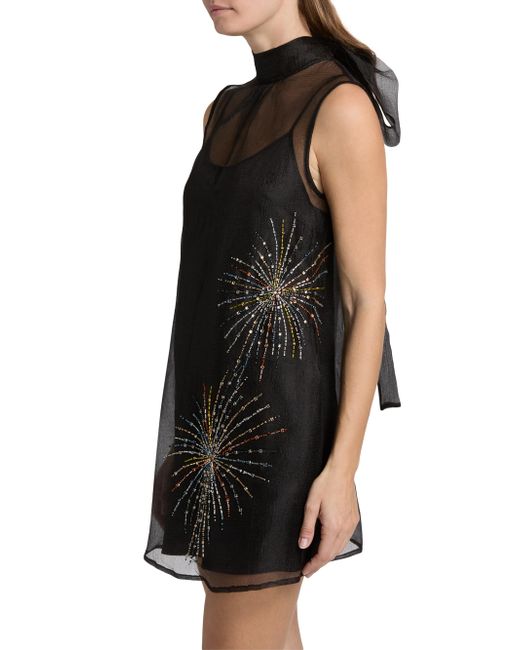 Cut in a shift silhouette, the Staud Albee minidress is crafted of a lightweight taffeta weave with a distinct stand collar and beaded firework embellishments. Stand collar Sleeveless Back self-tie closure 100% polyester Trim: 50% glass beads/50% epoxy polymer Lining: 97% nylon/3% elastane Dry clean Imported SIZE & FIT This style is constructed in a woven, no-stretch fabric for a tailored fit About 33" from shoulder to hem Bust: about 34" Model measurements: 5'10" tall Model is wearing a US size Small. Contemporary Sportswear - Contemporary Collections > Staud > Saks Fifth Avenue. Staud. Color: Firework. Size: XS.