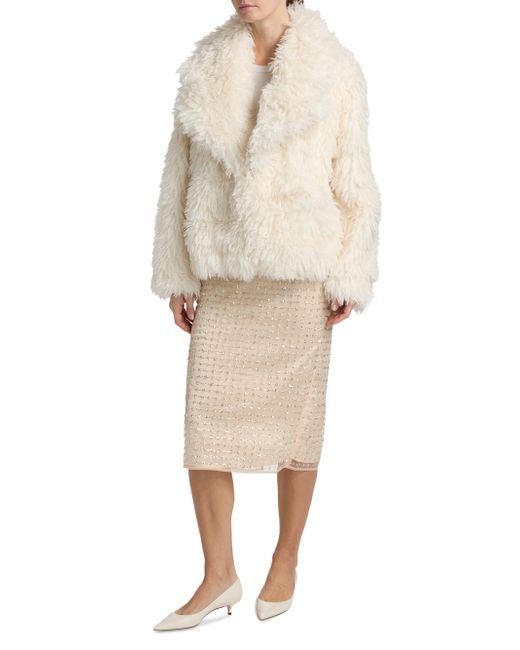 Crafted of plush faux shearling, Staud's oversized Soprano jacket features a shawl collar, long sleeves, and a concealed closure. Shawl collar Long sleeves Button-front closure 100% polyester Lining: 100% polyester Fur type: faux Dry clean Imported SIZE & FIT This style is designed for an oversized fit About 22" from shoulder to hem Model measurements: 5'10" tall Model is wearing a US size Small. Contemporary Sportswear - Contemporary Collections > Staud > Saks Fifth Avenue. Staud. Color: Ivory. Size: XS.