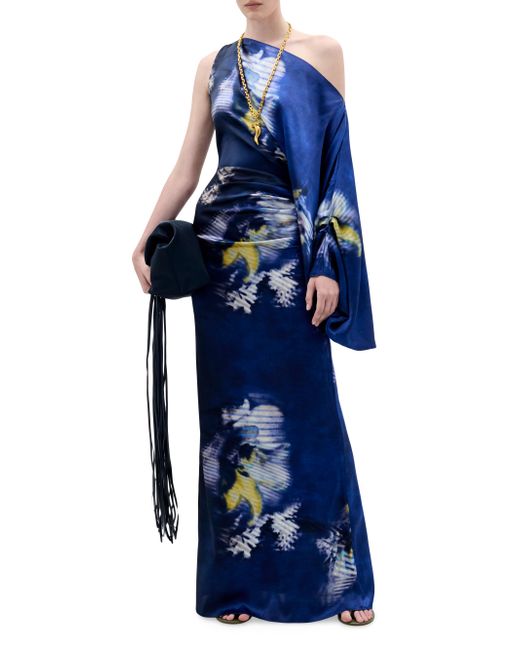 This Dotty maxi dress from Silvia Tcherassi is crafted of stretch silk, featuring abstract print, a ruched waist, and a balloon sleeve. One-shoulder neckline Long sleeves Pulls over 94% silk/6% elastane Dry clean Imported SIZE & FIT Model measurements: 5'10" tall Model is wearing a US size Small. Designer Lifestyle - Silvia Tcherassi > Silvia Tcherassi > Saks Fifth Avenue. Silvia Tcherassi. Color: Midnight Flower. Size: XS.