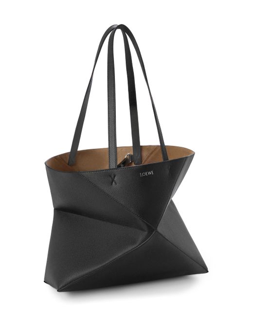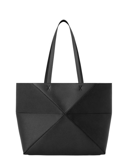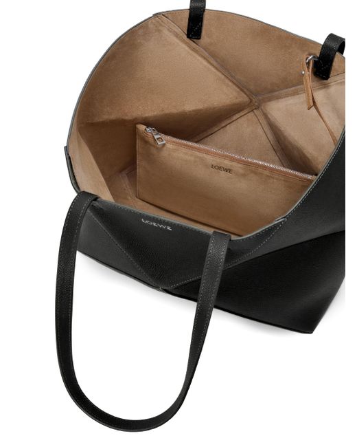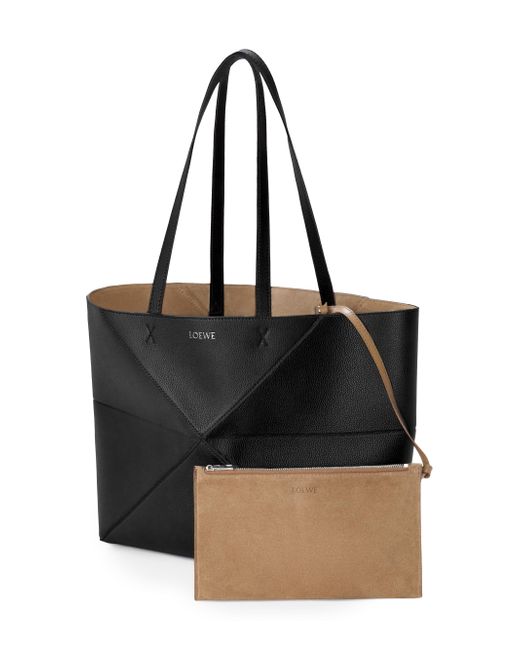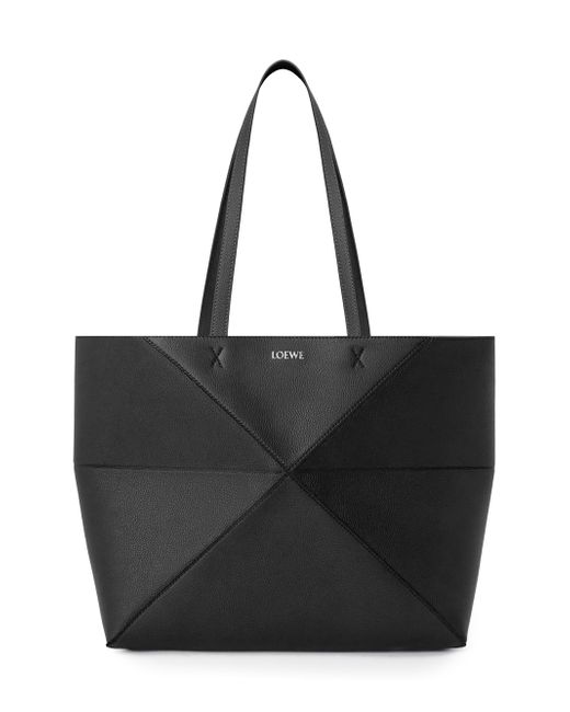Made in Spain, this Puzzle Fold tote bag from LOEWE is crafted of leather, featuring a geometric paneled design that allows it to fold completely flat for easy storage. Two shoulder straps Removable zip pouch Magnetic closure Leather Made in Spain SIZE About 12.25"W x 11.25"H x 4.75"D ABOUT THE BRAND For over 179 years, LOEWE has been synonymous with classic luxury and expertise in fine leather and tailoring. The Spanish house's latest chapter hones in on redefining the craft through an intellectual-yet-playful approach to fashion. The line's bold and vibrant take on the Spanish lifestyle is infused in its effortlessly chic handbags, shoes, ready-to-wear and accessories for women and men. Handbags - Loewe Handbags > Loewe > Saks Fifth Avenue. LOEWE. Color: Black.