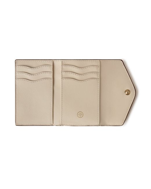 Neat and practical, with Mulberry's signature press stud closure, the Folded Multi-Card Wallet is perfect for popping inside your bag or pocket. Details: A card wallet with our signature press stud closure. Foil embossed Mulberry logo Mulberry Tree signature press stud closure Foil embossed internal Mulberry tree One zipped compartment Two internal slip pockets Six internal credit card slots One note compartment Soft Gold hardware finish Nappa and moire lining Height 8cm Width 11.5cm Depth 3cm Material Micro Classic Grain A smooth calf leather with a micro grain and soft touch. This product's code is RL7841-587H687