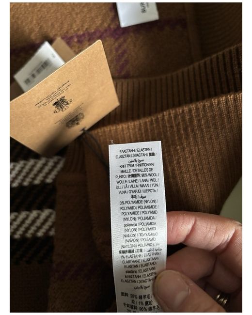 A Italian-made scarf crafted from wool with a hint of stretch intarsia-knitted with our Exaggerated Check and finished with ribbed trims. 200 x 30cm/78.7 x 11.8in 98% wool 1% elastane 1% polyamide Trim: 96% wool 3% polyamide 1% elastane Rectangular Specialist dry clean Made in Italy. Was gift