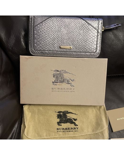 The Burberry Python Skin and Calf Leather silver Wallet is a luxurious accessory designed for women. Crafted with high-quality leather materials, this wallet exudes elegance and sophistication. The silver colour adds a touch of glamour, making it a stylish addition to any handbag or purse. Packaged in a box, this wallet makes for a perfect gift or a treat for yourself. The Burberry brand ensures excellence and craftsmanship in every detail. Dust bag Original Box (has some marks on the box) Care instructions Inner 100% calf leather Outer python skin 12 card slots 1 zip middle pocket 2 slots for bills receipts etc
