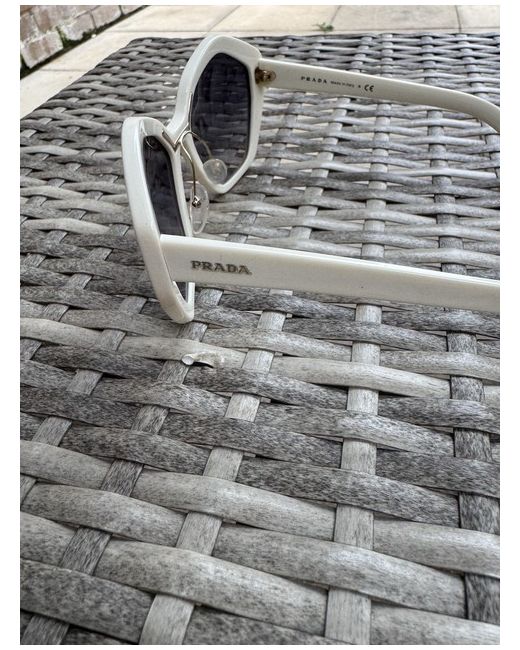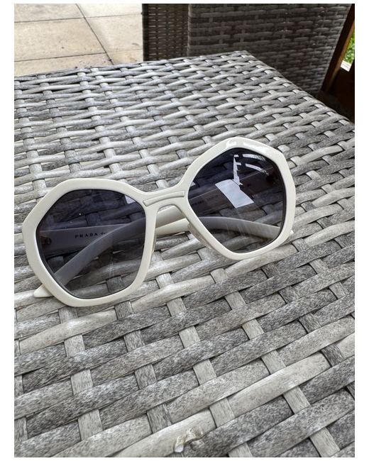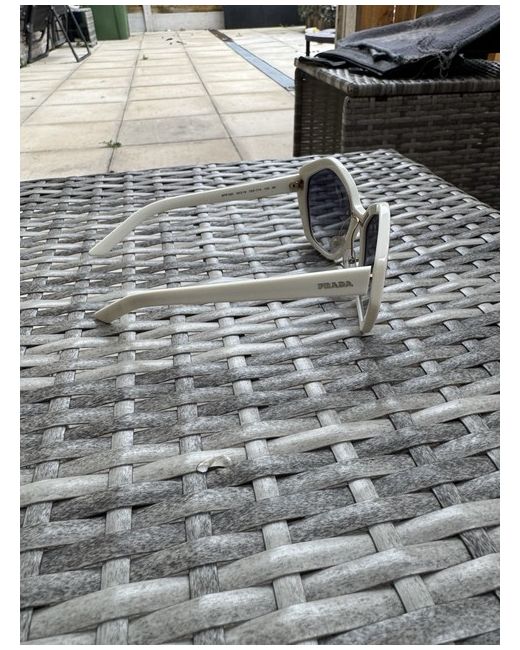 The Prada Sunglasses for women feature a square design with tinted blue lenses, providing UV400 protection. The frame is made of plastic in ivory colour, with temple length of 135mm. These designer sunglasses from the luxury brand Prada offer a stylish and functional accessory for any outfit, with a solid pattern and a touch of elegance. Ideal for adding a touch of sophistication to your look, these sunglasses are a must-have for any fashion-forward individual seeking a high-quality eyewear option. New without original box or packaging