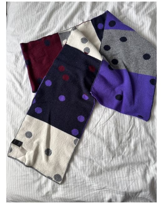 The Paul Smith Women's Contrasting Spotty Scarf is a stylish and versatile accessory for the autumn and winter seasons. Made from wool with a knit fabric type, this multicoloured scarf features a classic spotty pattern and a rectangular style. Measuring approximately 180cm in length and 24cm in width, it can be worn as a neck warmer to keep you cosy and fashionable. Crafted in Scotland by the renowned brand Paul Smith, this scarf is a must-have addition to any woman's wardrobe.