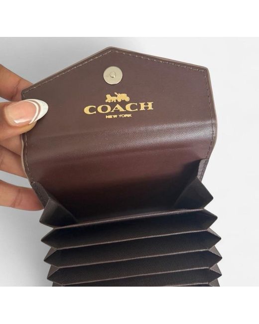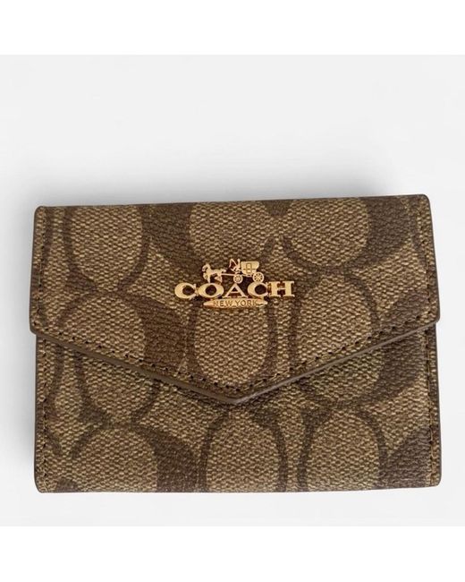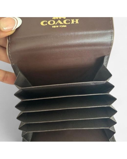 The Beige Coach Wallet is a stylish and practical accessory for women, featuring a zip-around design for secure storage. Made from leather with canvas fabric type, it showcases the iconic Coach logo as an accent. This wallet is perfect for keeping all your credit cards organized in a chic and classic beige colour. The brand's reputation for quality and craftsmanship is evident in this timeless piece.