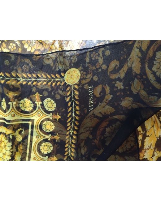 Versace Scarf Brand New unworn RRP £440.00 Baroque Pattern Black & Gold 100% Silk Very fine material almost like chiffon