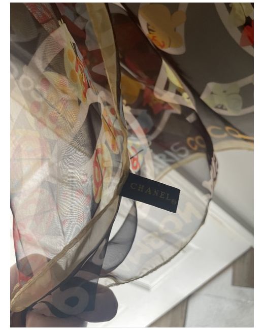 Embrace timeless fashion with this exquisite Chanel scarf. Featuring a beautiful floral pattern in brown hues, this scarf is the perfect accessory for any woman. Made with high-quality materials, this scarf exudes luxury and elegance. Pair it with any outfit to add a touch of sophistication. Whether you're dressing up for a special occasion or simply adding a touch of glamour to your everyday look, this Chanel scarf is a must-have. Add it to your collection today and experience the allure of Chanel.