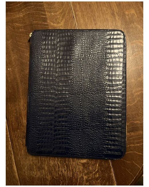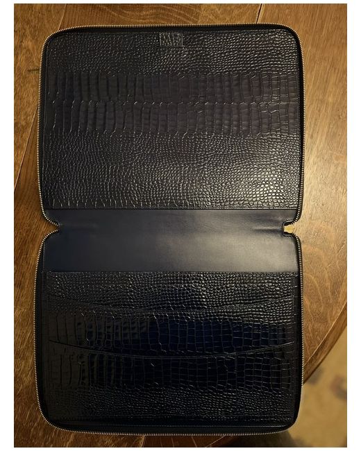 Beautiful midnight blue A4 writing folder in Smythson’s iconic crocodile embossed leather. Leather interior Zip closure 3 internal pockets Pen loop Slight paint markings on outside of zip, see photo