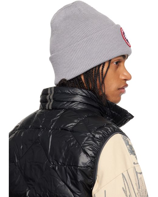 Rib-knit wool beanie. Embroidered logo patch at rolled brim. Supplier color: Heather grey