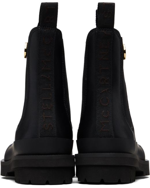 Ankle-high buffed faux-leather Chelsea boots. · Logo-woven pull-loops at collar · Elasticized gusset at sides · Logo charm at outer side · Logo-woven webbing trim at heel · Faux-leather lining · Rubber trim at welt · Treaded rubber sole Made from cruelty-free, non-animal materials. Supplier color: Black