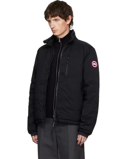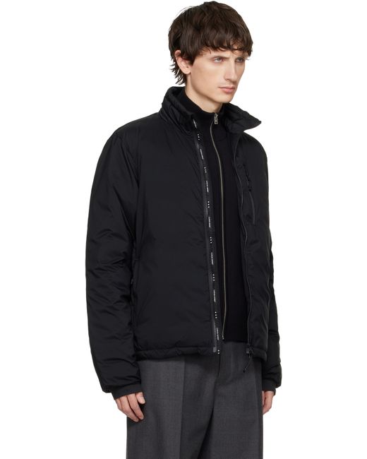 Packable down-filled nylon ripstop jacket. Lightweight, water-repellent, and wind-resistant. · Bungee-style drawstring at stand collar · Two-way zip closure · Zip pockets at front · Bungee-style drawstring at hem · Embroidered logo patch at sleeve · Power Stretch® jersey cuffs · Zip pocket and patch pocket at interior · Fully lined Supplier color: Black