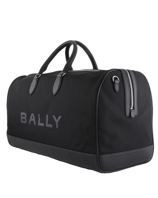 Bally Mens Tote. SKU: MAT02B-U901P. Material: Leather;Nylon. Color: Black/Palladio. Size: W:50cm x H:27cm. Bally Logo-Print Two-Handle Tote. This tote features a logo print on the front, a top zip fastening, two top handles, an adjustable detachable shoulder strap, leather trim, silver-tone hardware, and a main compartment. Outer: Nylon 100%, Leather 100%.
