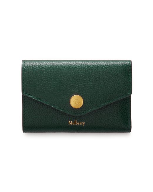 Neat and practical, with Mulberry's signature press stud closure, the Folded Multi-Card Wallet is perfect for popping inside your bag or pocket. Details: A neat and practical wallet with press stud closure. Foil embossed Mulberry logo Mulberry tree signature press stud Foil embossed internal Mulberry tree One zipped compartment Two internal slip pockets Six internal credit card slots One note compartment Brass components with tumbled finish Nappa lining Height 8cm Width 11.5cm Depth 3cm Material Small Classic Grain A soft cow leather with a small printed grain effect. The leather is lightly finished to protect the grain surface. This product's code is RL6447-205Q633